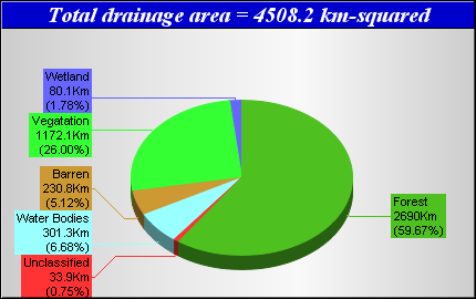 Landcover data was derived from the Canadian Forest Service Earth Observation for Sustainable Development of Forests (EOSD) Landcover dataset. The EOSD data is a land cover classification based on Landsat imagery circa 2000 and has a spatial resolution of approximately 30 metres. The landcover scheme shown is an aggregation of the 23 classes included in EOSD and breaks down as follows: Unclassified (No classified data available), Lakes, Barren or developed/urban lands, nonforested Vegetation (grasslands, shrubs etc), Wetlands and Forest.