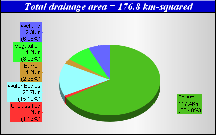 Landcover data was derived from the Canadian Forest Service Earth Observation for Sustainable Development of Forests (EOSD) Landcover dataset. The EOSD data is a land cover classification based on Landsat imagery circa 2000 and has a spatial resolution of approximately 30 metres. The landcover scheme shown is an aggregation of the 23 classes included in EOSD and breaks down as follows: Unclassified (No classified data available), Lakes, Barren or developed/urban lands, nonforested Vegetation (grasslands, shrubs etc), Wetlands and Forest.
