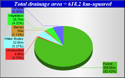 Landcover data was derived from the Canadian Forest Service Earth Observation for Sustainable Development of Forests (EOSD) Landcover dataset. The EOSD data is a land cover classification based on Landsat imagery circa 2000 and has a spatial resolution of approximately 30 metres. The landcover scheme shown is an aggregation of the 23 classes included in EOSD and breaks down as follows: Unclassified (No classified data available), Lakes, Barren or developed/urban lands, nonforested Vegetation (grasslands, shrubs etc), Wetlands and Forest.