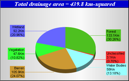 Landcover data was derived from the Canadian Forest Service Earth Observation for Sustainable Development of Forests (EOSD) Landcover dataset. The EOSD data is a land cover classification based on Landsat imagery circa 2000 and has a spatial resolution of approximately 30 metres. The landcover scheme shown is an aggregation of the 23 classes included in EOSD and breaks down as follows: Unclassified (No classified data available), Lakes, Barren or developed/urban lands, nonforested Vegetation (grasslands, shrubs etc), Wetlands and Forest.