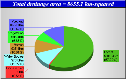 Landcover data was derived from the Canadian Forest Service Earth Observation for Sustainable Development of Forests (EOSD) Landcover dataset. The EOSD data is a land cover classification based on Landsat imagery circa 2000 and has a spatial resolution of approximately 30 metres. The landcover scheme shown is an aggregation of the 23 classes included in EOSD and breaks down as follows: Unclassified (No classified data available), Lakes, Barren or developed/urban lands, nonforested Vegetation (grasslands, shrubs etc), Wetlands and Forest.