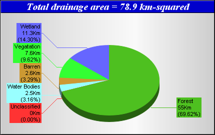 Landcover data was derived from the Canadian Forest Service Earth Observation for Sustainable Development of Forests (EOSD) Landcover dataset. The EOSD data is a land cover classification based on Landsat imagery circa 2000 and has a spatial resolution of approximately 30 metres. The landcover scheme shown is an aggregation of the 23 classes included in EOSD and breaks down as follows: Unclassified (No classified data available), Lakes, Barren or developed/urban lands, nonforested Vegetation (grasslands, shrubs etc), Wetlands and Forest.