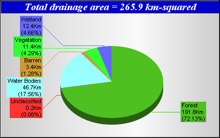 Landcover data was derived from the Canadian Forest Service Earth Observation for Sustainable Development of Forests (EOSD) Landcover dataset. The EOSD data is a land cover classification based on Landsat imagery circa 2000 and has a spatial resolution of approximately 30 metres. The landcover scheme shown is an aggregation of the 23 classes included in EOSD and breaks down as follows: Unclassified (No classified data available), Lakes, Barren or developed/urban lands, nonforested Vegetation (grasslands, shrubs etc), Wetlands and Forest.