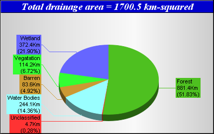 Landcover data was derived from the Canadian Forest Service Earth Observation for Sustainable Development of Forests (EOSD) Landcover dataset. The EOSD data is a land cover classification based on Landsat imagery circa 2000 and has a spatial resolution of approximately 30 metres. The landcover scheme shown is an aggregation of the 23 classes included in EOSD and breaks down as follows: Unclassified (No classified data available), Lakes, Barren or developed/urban lands, nonforested Vegetation (grasslands, shrubs etc), Wetlands and Forest.