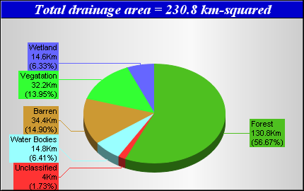 Landcover data was derived from the Canadian Forest Service Earth Observation for Sustainable Development of Forests (EOSD) Landcover dataset. The EOSD data is a land cover classification based on Landsat imagery circa 2000 and has a spatial resolution of approximately 30 metres. The landcover scheme shown is an aggregation of the 23 classes included in EOSD and breaks down as follows: Unclassified (No classified data available), Lakes, Barren or developed/urban lands, nonforested Vegetation (grasslands, shrubs etc), Wetlands and Forest.