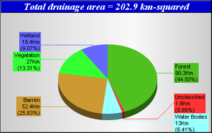 Landcover data was derived from the Canadian Forest Service Earth Observation for Sustainable Development of Forests (EOSD) Landcover dataset. The EOSD data is a land cover classification based on Landsat imagery circa 2000 and has a spatial resolution of approximately 30 metres. The landcover scheme shown is an aggregation of the 23 classes included in EOSD and breaks down as follows: Unclassified (No classified data available), Lakes, Barren or developed/urban lands, nonforested Vegetation (grasslands, shrubs etc), Wetlands and Forest.