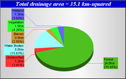 Landcover data was derived from the Canadian Forest Service Earth Observation for Sustainable Development of Forests (EOSD) Landcover dataset. The EOSD data is a land cover classification based on Landsat imagery circa 2000 and has a spatial resolution of approximately 30 metres. The landcover scheme shown is an aggregation of the 23 classes included in EOSD and breaks down as follows: Unclassified (No classified data available), Lakes, Barren or developed/urban lands, nonforested Vegetation (grasslands, shrubs etc), Wetlands and Forest.