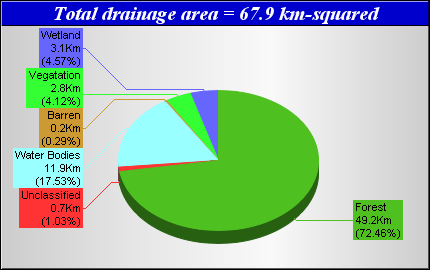 Landcover data was derived from the Canadian Forest Service Earth Observation for Sustainable Development of Forests (EOSD) Landcover dataset. The EOSD data is a land cover classification based on Landsat imagery circa 2000 and has a spatial resolution of approximately 30 metres. The landcover scheme shown is an aggregation of the 23 classes included in EOSD and breaks down as follows: Unclassified (No classified data available), Lakes, Barren or developed/urban lands, nonforested Vegetation (grasslands, shrubs etc), Wetlands and Forest.