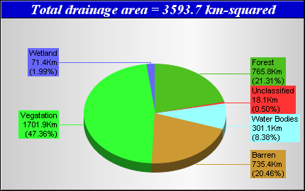 Landcover data was derived from the Canadian Forest Service Earth Observation for Sustainable Development of Forests (EOSD) Landcover dataset. The EOSD data is a land cover classification based on Landsat imagery circa 2000 and has a spatial resolution of approximately 30 metres. The landcover scheme shown is an aggregation of the 23 classes included in EOSD and breaks down as follows: Unclassified (No classified data available), Lakes, Barren or developed/urban lands, nonforested Vegetation (grasslands, shrubs etc), Wetlands and Forest.