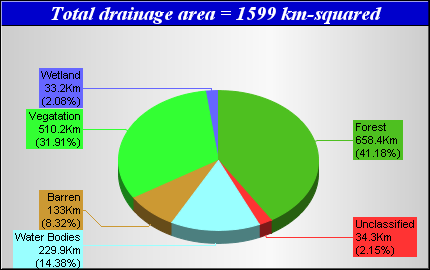 Landcover data was derived from the Canadian Forest Service Earth Observation for Sustainable Development of Forests (EOSD) Landcover dataset. The EOSD data is a land cover classification based on Landsat imagery circa 2000 and has a spatial resolution of approximately 30 metres. The landcover scheme shown is an aggregation of the 23 classes included in EOSD and breaks down as follows: Unclassified (No classified data available), Lakes, Barren or developed/urban lands, nonforested Vegetation (grasslands, shrubs etc), Wetlands and Forest.