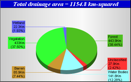 Landcover data was derived from the Canadian Forest Service Earth Observation for Sustainable Development of Forests (EOSD) Landcover dataset. The EOSD data is a land cover classification based on Landsat imagery circa 2000 and has a spatial resolution of approximately 30 metres. The landcover scheme shown is an aggregation of the 23 classes included in EOSD and breaks down as follows: Unclassified (No classified data available), Lakes, Barren or developed/urban lands, nonforested Vegetation (grasslands, shrubs etc), Wetlands and Forest.