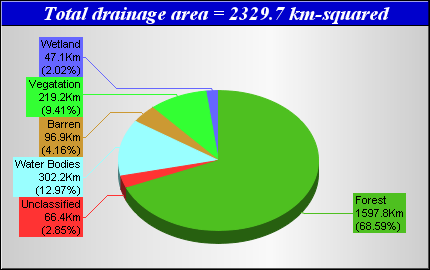 Landcover data was derived from the Canadian Forest Service Earth Observation for Sustainable Development of Forests (EOSD) Landcover dataset. The EOSD data is a land cover classification based on Landsat imagery circa 2000 and has a spatial resolution of approximately 30 metres. The landcover scheme shown is an aggregation of the 23 classes included in EOSD and breaks down as follows: Unclassified (No classified data available), Lakes, Barren or developed/urban lands, nonforested Vegetation (grasslands, shrubs etc), Wetlands and Forest.