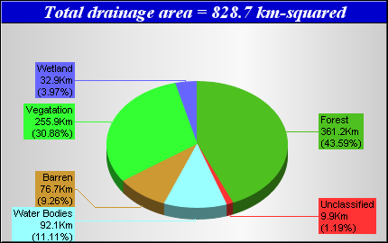 Landcover data was derived from the Canadian Forest Service Earth Observation for Sustainable Development of Forests (EOSD) Landcover dataset. The EOSD data is a land cover classification based on Landsat imagery circa 2000 and has a spatial resolution of approximately 30 metres. The landcover scheme shown is an aggregation of the 23 classes included in EOSD and breaks down as follows: Unclassified (No classified data available), Lakes, Barren or developed/urban lands, nonforested Vegetation (grasslands, shrubs etc), Wetlands and Forest.
