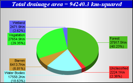 Landcover data was derived from the Canadian Forest Service Earth Observation for Sustainable Development of Forests (EOSD) Landcover dataset. The EOSD data is a land cover classification based on Landsat imagery circa 2000 and has a spatial resolution of approximately 30 metres. The landcover scheme shown is an aggregation of the 23 classes included in EOSD and breaks down as follows: Unclassified (No classified data available), Lakes, Barren or developed/urban lands, nonforested Vegetation (grasslands, shrubs etc), Wetlands and Forest.