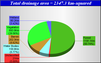 Landcover data was derived from the Canadian Forest Service Earth Observation for Sustainable Development of Forests (EOSD) Landcover dataset. The EOSD data is a land cover classification based on Landsat imagery circa 2000 and has a spatial resolution of approximately 30 metres. The landcover scheme shown is an aggregation of the 23 classes included in EOSD and breaks down as follows: Unclassified (No classified data available), Lakes, Barren or developed/urban lands, nonforested Vegetation (grasslands, shrubs etc), Wetlands and Forest.