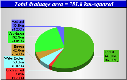 Landcover data was derived from the Canadian Forest Service Earth Observation for Sustainable Development of Forests (EOSD) Landcover dataset. The EOSD data is a land cover classification based on Landsat imagery circa 2000 and has a spatial resolution of approximately 30 metres. The landcover scheme shown is an aggregation of the 23 classes included in EOSD and breaks down as follows: Unclassified (No classified data available), Lakes, Barren or developed/urban lands, nonforested Vegetation (grasslands, shrubs etc), Wetlands and Forest.