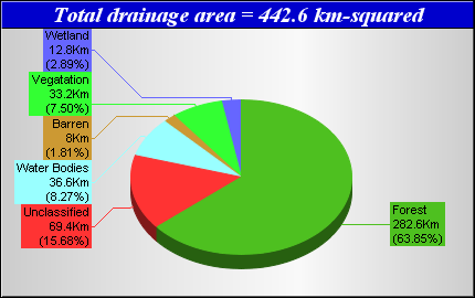 Landcover data was derived from the Canadian Forest Service Earth Observation for Sustainable Development of Forests (EOSD) Landcover dataset. The EOSD data is a land cover classification based on Landsat imagery circa 2000 and has a spatial resolution of approximately 30 metres. The landcover scheme shown is an aggregation of the 23 classes included in EOSD and breaks down as follows: Unclassified (No classified data available), Lakes, Barren or developed/urban lands, nonforested Vegetation (grasslands, shrubs etc), Wetlands and Forest.